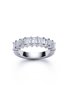 Tapers Ring in 18k white gold, set with two diamonds, tapers cut, for a total weight of 0,52 carat and with a central diamond, emerald cut, of 2 carats, shiny finish.It is possible to consider a diamond size more or less important for this type of ring.
